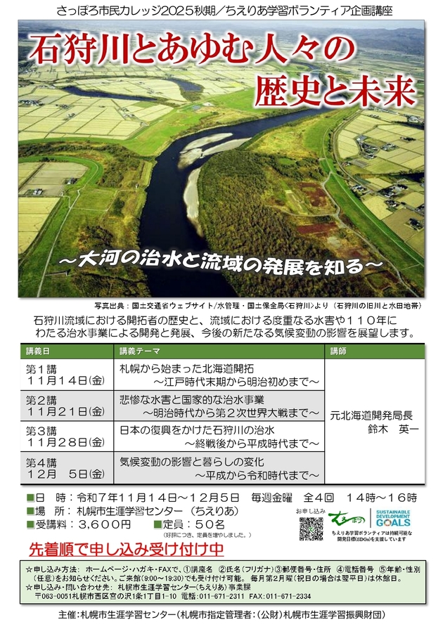 【ちえりあ学習ボランティア企画講座】 石狩川とあゆむ人々の歴史と未来~大河の治水と流域の発展を知る~