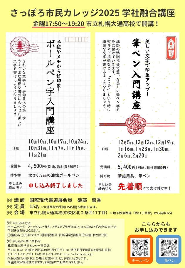 ※この講座は市立札幌大通高校を会場に実施します。