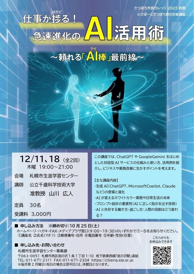 これらを通して、単なる流行ではなく、自分の仕事や日常生活の中で「使いこなせるAI」としての理解を深めることを目指します。