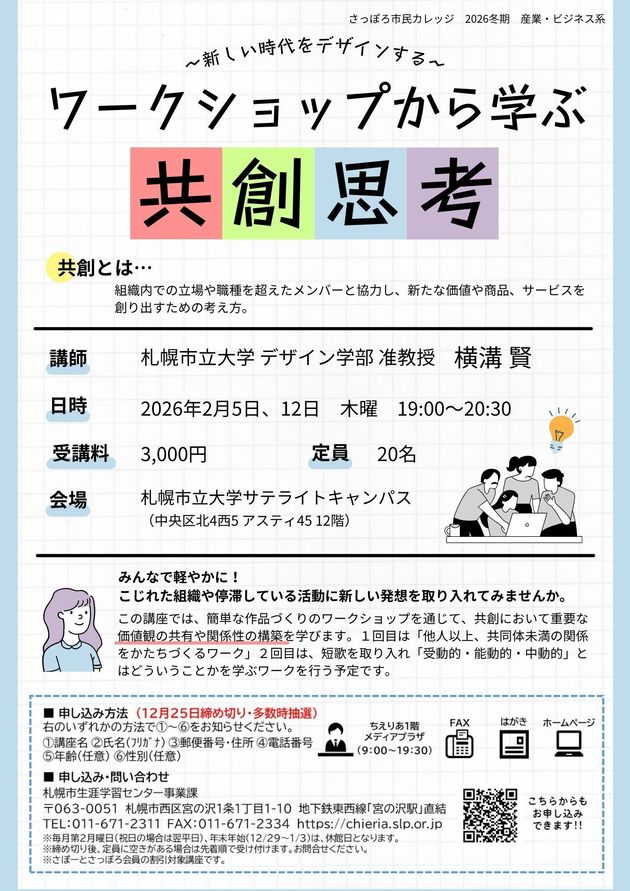 HOME > 講座案内 > ☆~新しい時代をデザインする~ワークショップから学ぶ共創思考