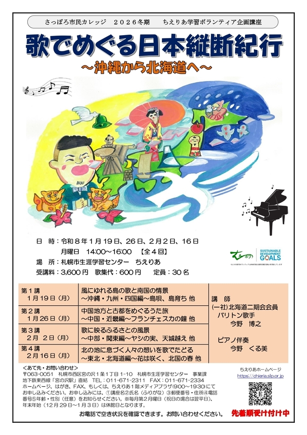 【ちえりあ学習ボランティア企画講座】 歌でめぐる日本縦断紀行~沖縄から北海道へ~