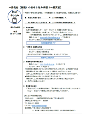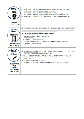 抽選結果は、申込月の下旬にセンター2階窓口およびホームページで発表します。