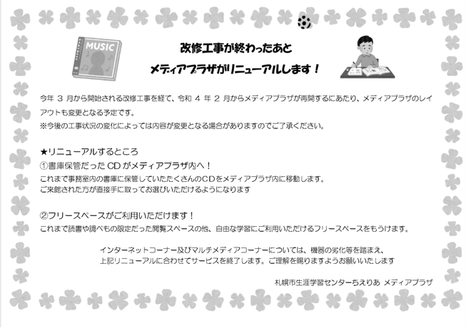 HOME > お知らせ > 2020年 > 改修工事が終わったあと メディアプラザがリニューアルします